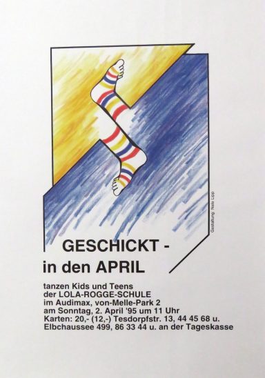 1995 Tanzaufführungen mit Kindern, Jugendlichen und Studierenden der Lola Rogge Schule: „Geschickt – in den April“, im Audimax - April