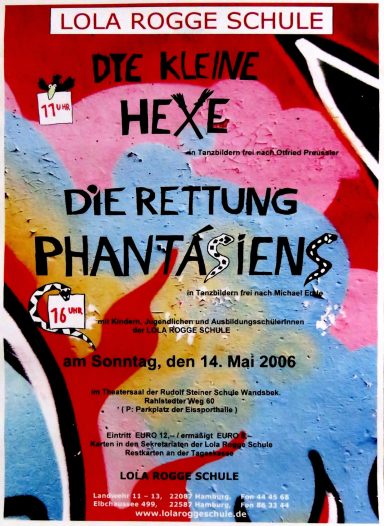 2006 Tanzaufführungen mit Kindern, Jugendlichen und Studierenden auf der Bühne der Rudolf Steiner Schule in Wandsbek: „Die Rettung Phantasiens“ und „Die kleine Hexe“ - 14. Mai